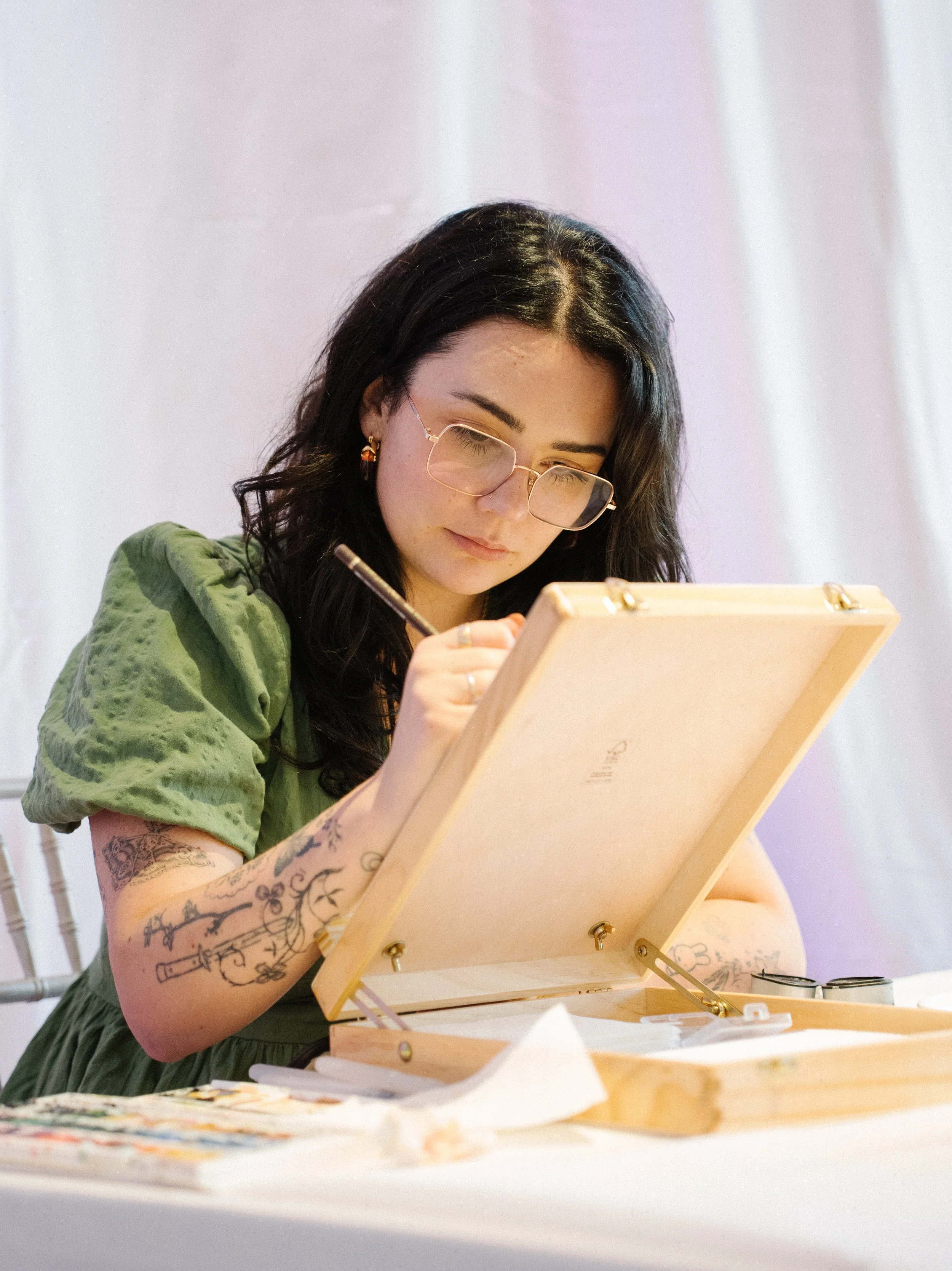 I honed my skills in drawing and painting growing up and education, and further pursued this with a Bachelors degree in Illustration, graduating in 2019. I continued to sell my art, take on illustration clients and begin my tattoo journey. I officially started tattooing in 2022, and now own my private, licensed tattoo studio in Bedminster, Bristol.
